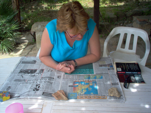 Uit eigen oogst wordt olijfolie en wijn gemaakt, die daar ook te koop was en waar we gretig gebruik van hebben gemaakt!